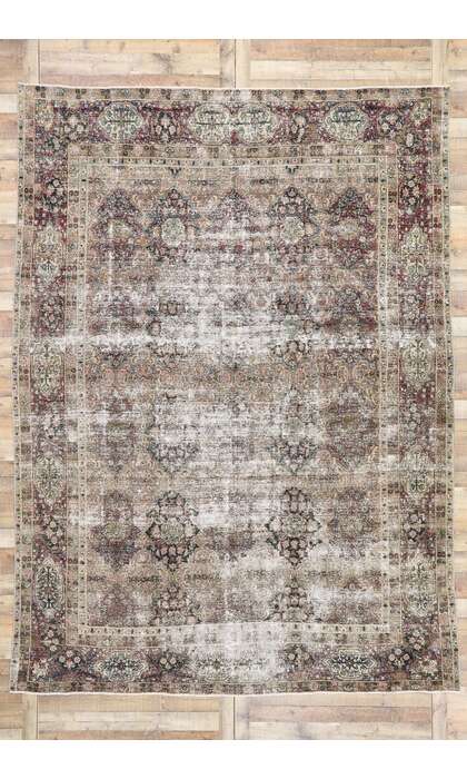 Invulnerable to the dozens of superficial decorating trends inundating each decade, Esmaili's distressed rugs collection offers breathtakingly handcrafted rugs from around the world, illuminating their own ageless style and eternal sumptuousness. Warmly inviting with traditional patterns delineated by neutral hues from subtle browns, rustic reds, gray tones, and beige hues, our antique distressed rugs showcase versatility and understated luxury. Weathered striations and design elements found in vintage distressed rugs add visual interest and texture. Esmaili Rug's distressed rugs set the mood for an industrial rustic, chic luxury interior.