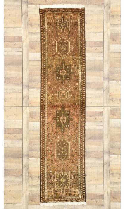 Large Central Geometric Medallion: At the heart of each Persian Heriz rug lies a large central medallion, a focal point that exudes grandeur and sophistication. This medallion, often encompassed by intricate tribal elements, instantly draws the eye and adds a touch of artistry to your room.