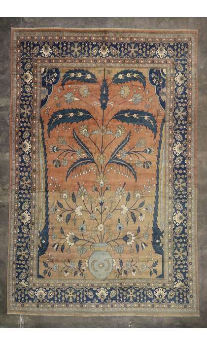 Dating back to 500 BCE during the Achaemenid Era, Persian rug making is the very essence of Persian/Iranian culture and art. Antique Persian rugs exhibit a variety of layouts that include depictions of Islamic buildings, historical monuments, spirals, Shah Abbassi, weeping willows, hunting scenes and symbols such as the tree of life and the garden of paradise. In our Persian antique rug collection online, you will find dazzling rugs with allover patterns, one-sided patterns, compartmentalized patterns or centralized medallions. A few handmade Persian rugs may contain abstract or asymmetrical designs but the majority of these rugs are unidirectional or simply one-sided.