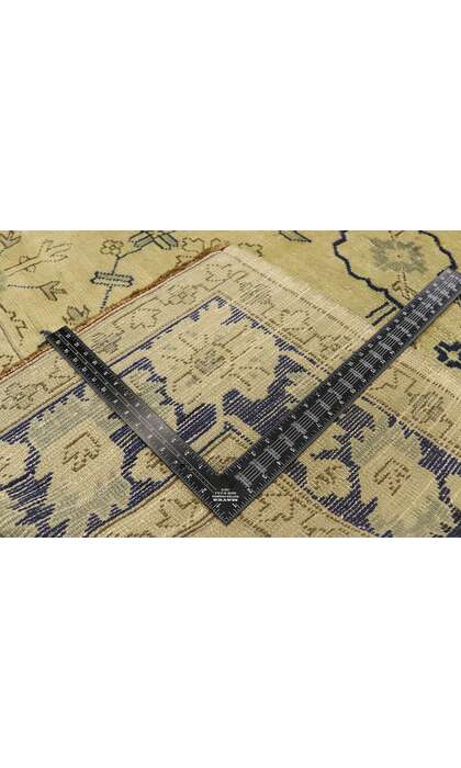 During the 18th and early 19th centuries, Oushak rug weaving declined, later re-emerging around 1900 when the Oushak area became the focal point of Turkish rug making. Oushak rugs made after 1900 are largely decorative, room-sized rugs featuring stunning medallion designs and intricate patterns incorporating scatterings of palmettes and vine scrolls or smaller images of bold medallions. Our antique Oushak rugs for sale will dynamically transform any room from nondescript to unforgettable with their quietly intense palettes, pleasing qualities and lustrous, soft wool. Oushak rugs eventually became so internationally revered and popular that “Oushak” is no longer considered a Turkish word but an English word with Turkish origins. In fact, antique Oushak rugs were so highly appreciated that artists such as Holbein and Lotto included these beautiful rugs in their paintings.